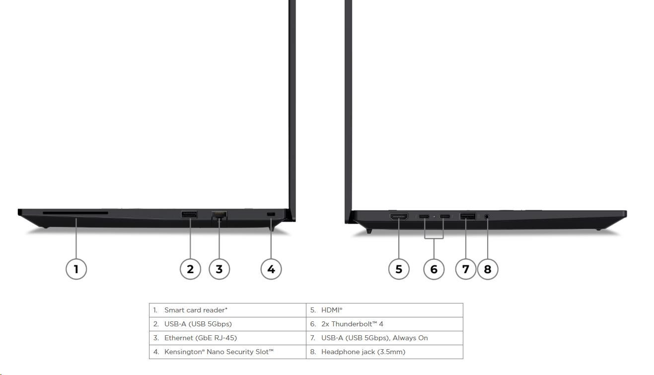 HDMI, 3.5mm Jack, Thunderbolt, USB 3.2 Gen 1, LAN (RJ-45)