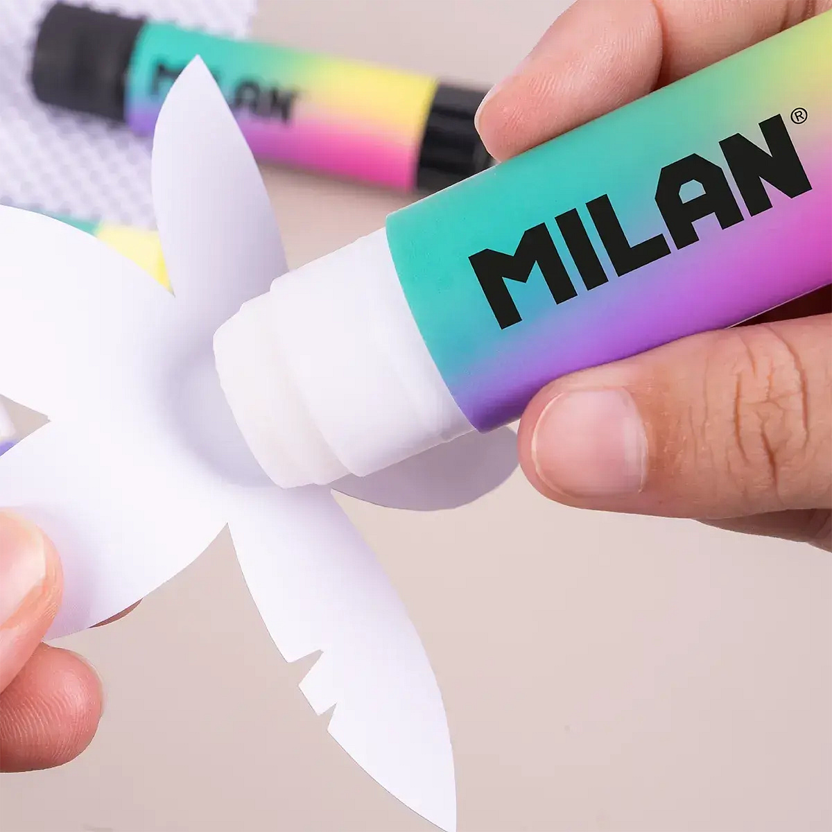 Viacúčelová lepiaca tyčinka MILAN 21g ideálna pre školákov. ľahko lepí papier, lepenku, látku, plsť