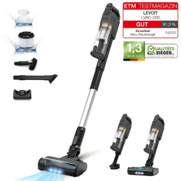 Tyčový vysavač Levoit je navržený, aby maximálně usnadnil úklid vašeho domova, ať už ho sdílíte se čtyřnohým, nebo dvounohým miláčkem. Vysavač je vybaven rotačním kartáčem s kombinací gumových a textilních lamel, který byl navržen tak, aby na něm nedocházelo ke hromadění namotaných vlasů nebo chlupů. Zároveň je ale kartáč efektivní a zachytává maximální množství nečistot. Vysavač pracuje s 22,2V vyjímatelným akumulátorem s kapacitou 2200 mAh a indikací nabití. Motor je s výkonem 180 W nezvykle tichý, při běžném provozu vydává 74 dB, v Turbo režimu pak 81 dB. Vysavač s plně nabitou baterií dokáže pracovat až 50 minut, což umožní úklid celého obydlí na jedno nabití. Úklid s LVAC 200 je radost díky jeho velmi nízké hmotnosti 1,45 kg. Díky tomu je snadné s vysavačem odstranit i pavučiny ze stropu, prach ze žaluzií nebo nečistoty pod nábytkem. V balení naleznete dlouhou a krátkou násadu, rotační kartáč, 2v1 kartáč na čalounění nebo zvířecí srst a 2v1 štěrbinový nástavec s kartáčem. Tím máte perfektní sadu nástrojů pro kompletní úklid. Levoit LVAC si hravě poradí se všemi povrchy, ať už jsou to koberce, tvrdé podlahy nebo čalounění. Kartáčový nástavec je navíc vybavený LED světlem, takže umožní práci v tmavých zákoutích, a navíc osvětluje přítomné nečistoty. Vysavač v sobě skrývá 5násobný filtrační systém, který odstraňuje částice od velikosti 0,3 mikrometrů. Nečistoty se shromažďují v 0,75L nádobě s mechanizmem pro snadné a hygienické vyprazdňování. Filtry i kartáč jsou jednoduše vyjímatelné a omyvatelné.