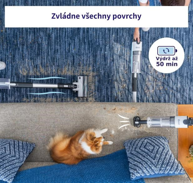 Vysávač je vybavený 180 W bezkartáčovým motorom napájaným z 2200 mAh batérie. Vďaka kombinácii moderného motora a veľkej batérie je vysávač nielen tichý, ale čo je dôležitejšie, vydrží naozaj dlho. Počas bežného upratovania dokáže vysávať až 50 minút, a to je dostatočný čas na vyčistenie celej plochy. Motor má 100 000 otáčok a poradí si aj s ťažšími nečistotami, ako je piesok a iný vonkajší materiál.