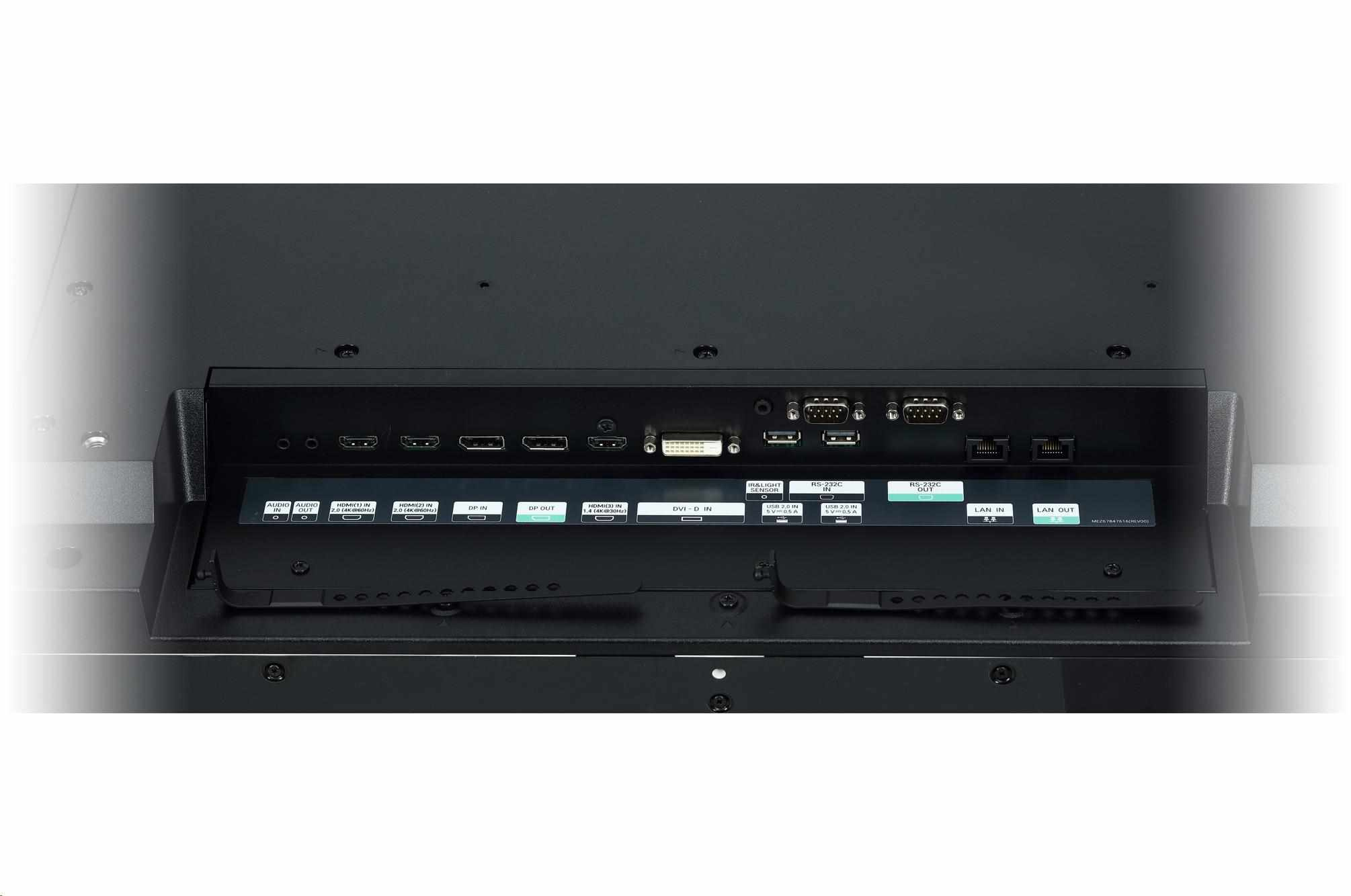 Brightness(Typ.) : 500 cd/m2 Pomer strán: 58:9 Frame: 4.4 mm(L / P), 5.9 mm(T / D) Hĺbka: 81,7 mm Rozhranie: HDMI (3), DP, USB(2), Audio, DVI-D, RS232C, RJ45, IR