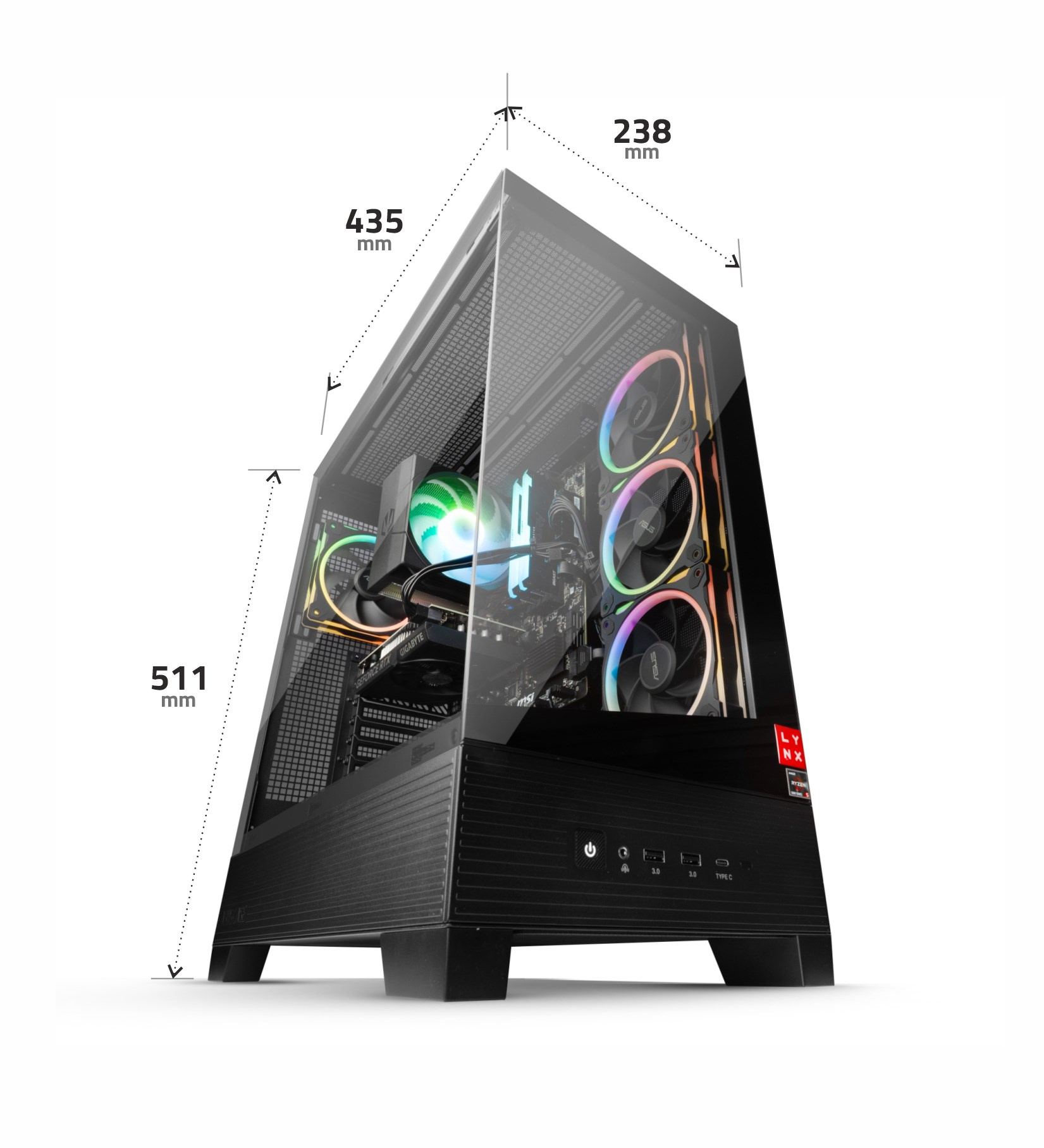 Herní sestava LYNX Challenger Ryzen 7 je ideální volbou pro hráče, kteří chtějí vysoký výkon bez kompromisů. Zvládá moderní herní tituly ve vysokých detailech, online hraní s vysokým FPS a je připravena i na práci, studium nebo multimediální zábavu. To vše v atraktivním designu, který zaujme na první pohled.