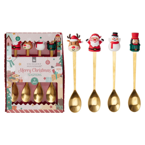 Štvordielna vianočná sada lyžičiek /vidličiek s figúrkami.