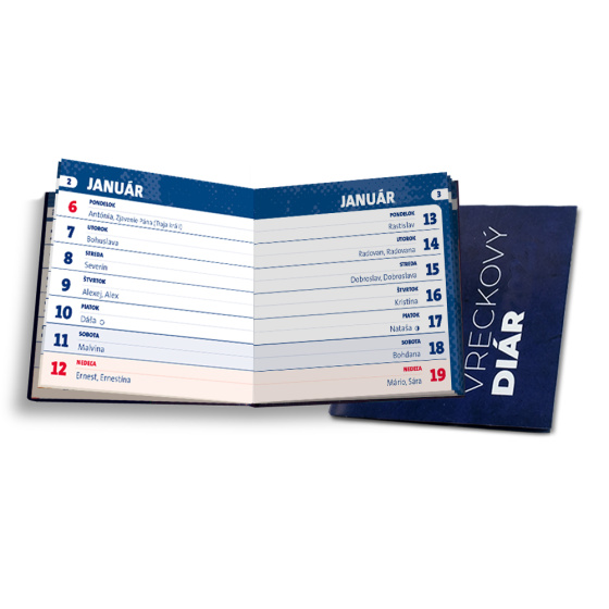 Týždenný vreckový minidiár s listami z 80 g bezdrevného papiera - mix dizajn. Rozmer: 80 x 80 mm.