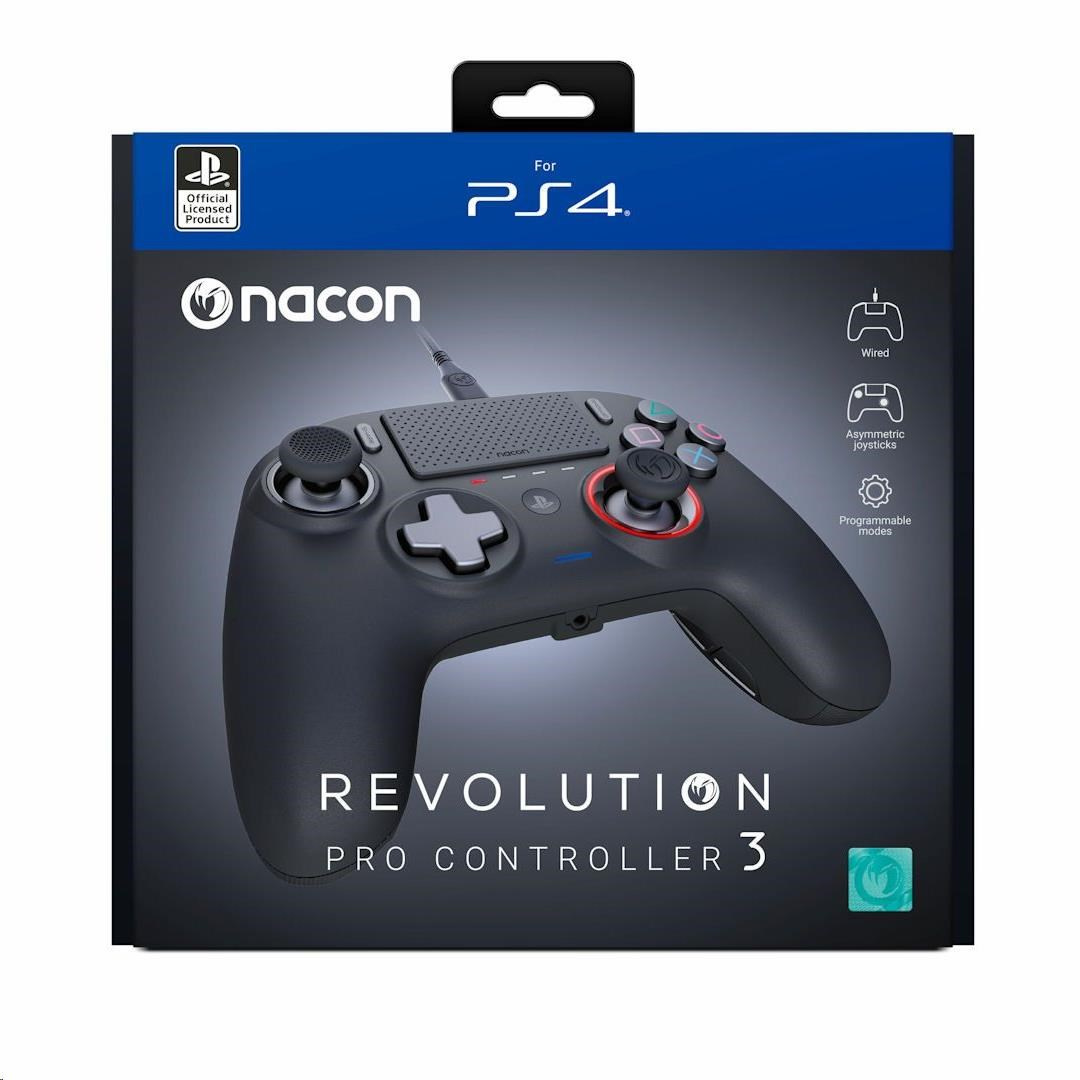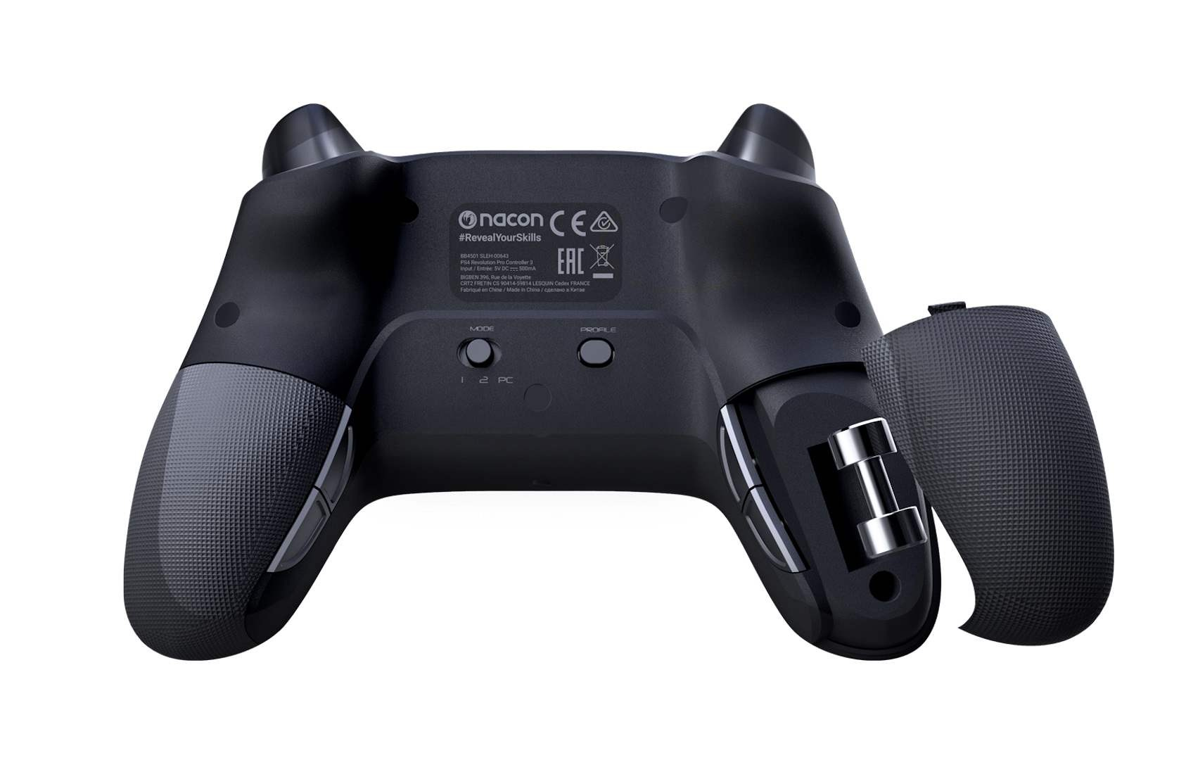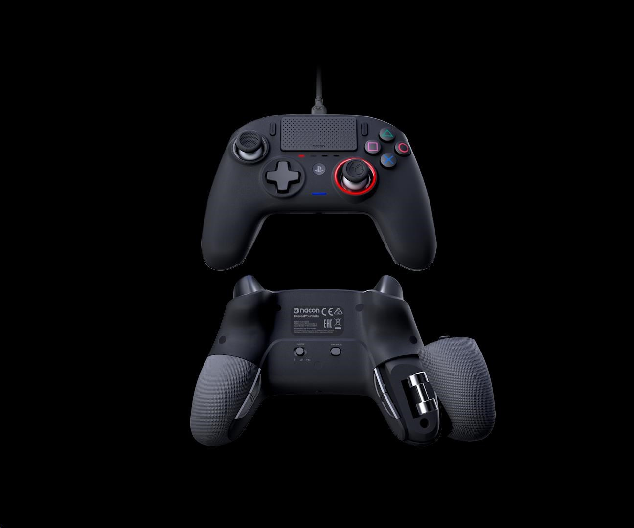 Káblový ovládač Nacon Revolution Pro Controller 3 má asymetricky umiestnené páčky, väčšie spúšte, väčšie akčné a zadné tlačidlá a tiež dve priehradky na závažie, ktoré vám umožnia nastaviť hmotnosť ovládača podľa vašich konkrétnych potrieb. Môžete hrať buď v bežnom režime PS4, alebo v pokročilých režimoch pre PS4 a PC. Pomocou sprievodnej aplikácie môžete v týchto režimoch upraviť nastavenia analógovej páčky a spúšte, priradiť ľubovoľné tlačidlá k tlačidlám skratiek, prepínať medzi štvor- alebo osemsmerným smerovým smerovým ovládaním, upraviť silu vibrácií v rukovätiach, zmeniť farbu svetelného krúžku okolo pravej páčky alebo nahrať svoje vlastné herné profily do ovládača, medzi ktorými potom môžete bleskovo prepínať.