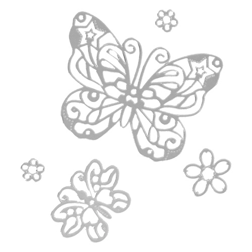 Popis Adhezívne nálepky Kvety /Motýle /Hviezdy - strieborná farba (mix /cena 1bal.)