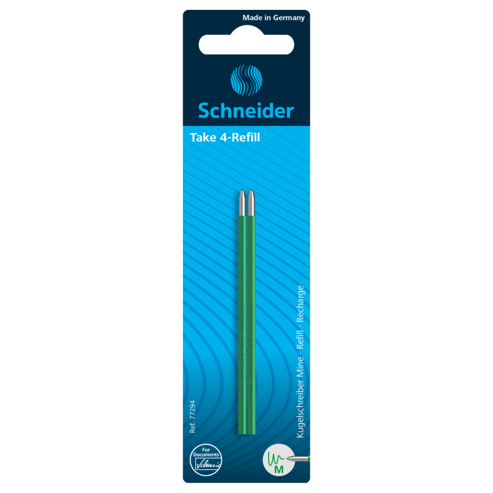 Náplň guľôčková Schneider Take 4 M sada 2 ks -zelená