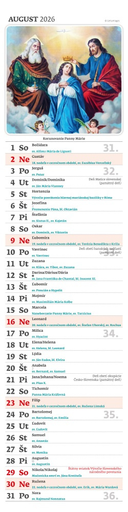 Formát kalendára: 12 x 48 cm• Kalendárium: slovenské mesačné menné + katolícke• Rozsah kalendára: 13