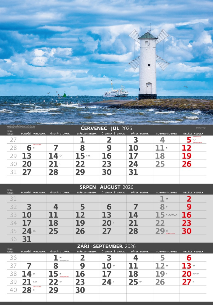 Popis Nástenný kalendár 2026 Pobrežie - trojmesačný