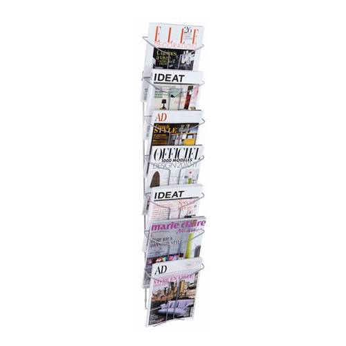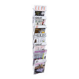 Prezentačný stojan nástenný, kovový, na katalógy A4, 7 priehradok