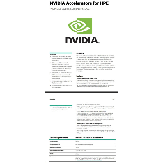 NVIDIA L40S 48GB PCIe Accelerator for HPE RENEW S2L70CR.