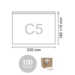 Obálka C5 transportná/priehľadná 235x160+15 mm, bal/100 ks