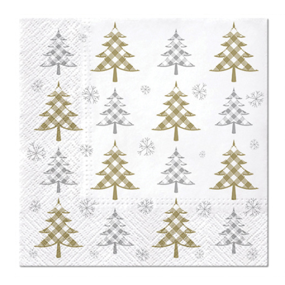 Popis Obrúsky PAW L 33x33cm Christmas Tree Check (gold and silver)