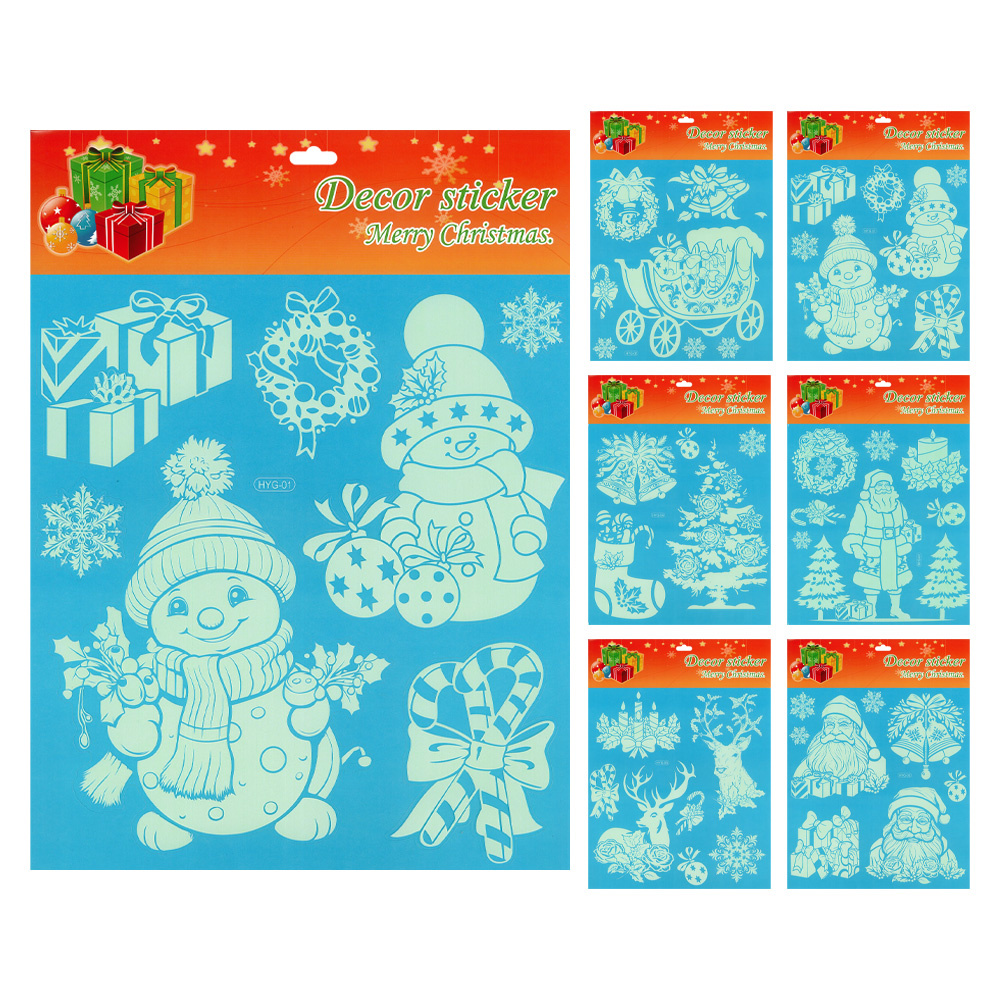 Sada vianočných nálepiek na vyzdobenie miestnosti (mix 6 dizajnov). fluorescenčný PVC materiál (sviprečítajte si viac