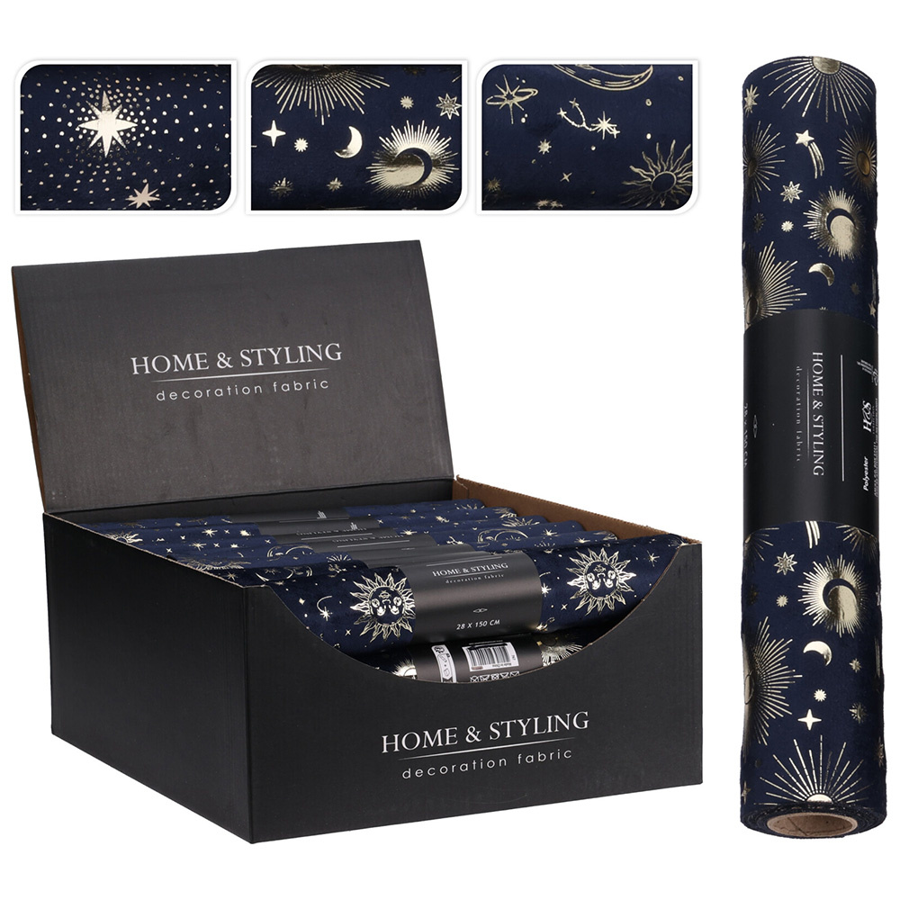 Popis Organza látková 28x150 cm - modrá, potlač v zlatej farbe (mix 3 motívov)