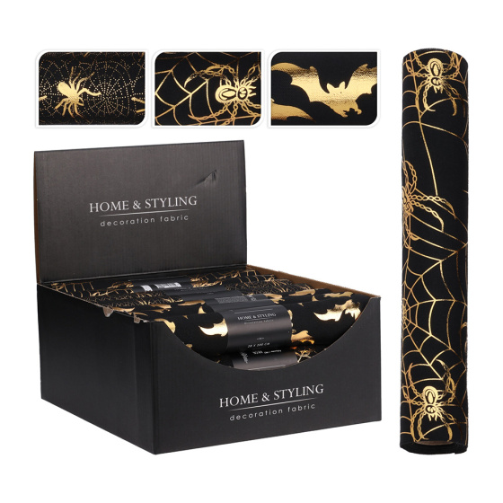 Dekoračná látka (organza, stredový pás) je vhodná na výzdobu stola, na aranžovanie strašidelnej párty a pod.