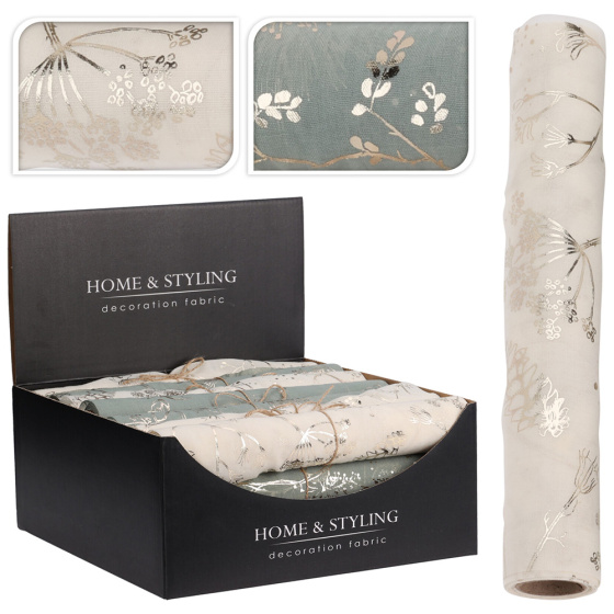 Dekoračná látka (organza, stredový pás) je vhodná na výzdobu sviatočného stola, na aranžovanie adventných vencov a pod.