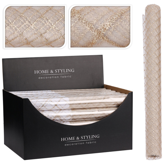 Dekoračná látka (organza, stredový pás) je vhodná na výzdobu sviatočného stola, na aranžovanie adventných vencov a pod.