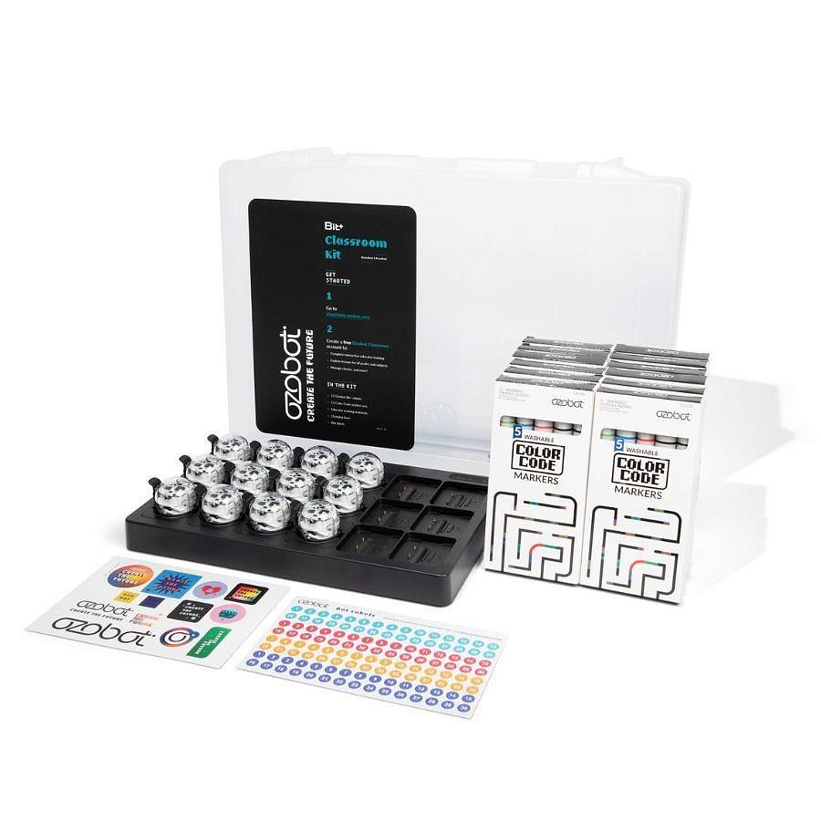 Tato sada pro školy a zájmové kroužky je vybavená vším, co potřebují velké týmy, aby se do zábavného kódování mohly hned pustit. Vedle 12 Ozobotů Bit+ v ní najdete i soubor aktivit, které vám pomohou do tajů programování hladce proniknout. Nechybí ani set 12 omyvatelných fix, které dětem usnadní do kreslení barevných kódů a vlastních spletitých drah. Šířka stopy popisovačů je přizpůsobená přímo senzorům malého bota. Ten se tak lépe orientuje na jejich trasách a nevyžaduje tak častou kalibraci. Radost malým programátorům určitě udělá i množství barevných samolepek. Novinkou je pak nabíjecí matrice, která se postará i o automatickou aktualizaci softwaru. Má nízký profil a skromné rozměry, aby nikdy nepřekážela. Součástí balení je AC/DC adaptér pro zapojení nabíjecí stanice do standardní elektrické zásuvky.