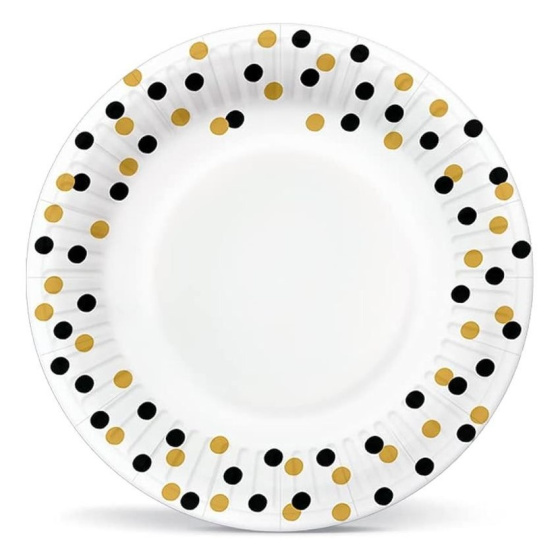 Papierový tanier PAW Eco 23 cm Confetti (gold-black) / 8 ks