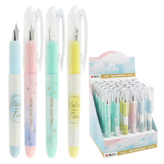 Plniace pero s konvertorom v krásnych pastelových farbách a dizajnom „Value your Time“. Pomocou konvertora si do pera bez problémov natiahnete atrament. Vysokokvalitný hrot z nehrdzavejúcej ocele. V prípade potreby môžete vymeniť konvertor za univerzálne bombičky (kód: 0560) s modrým atramentom. Hrúbka hrotu M, dodávané bez bombičiek.