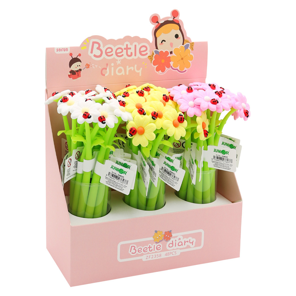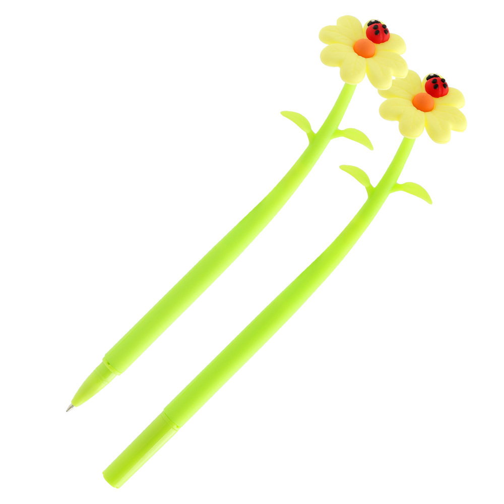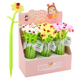 Dlhé gélové pero s gumenou kvetinkou na vrchnom, ohybnom konci (3 farby /3 dizajny).
