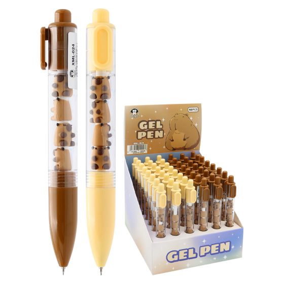 Gélové pero s motívom Capybara a priehľadným telom (2 farby v balení).
