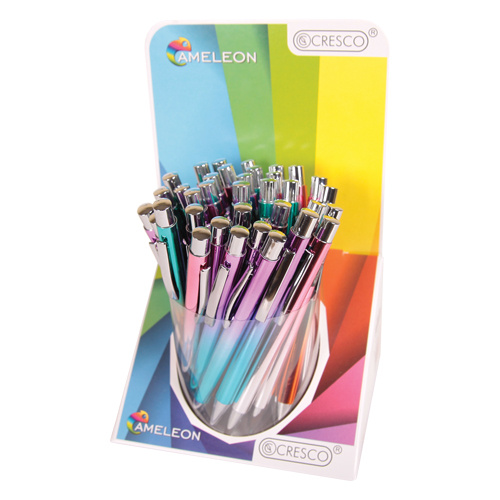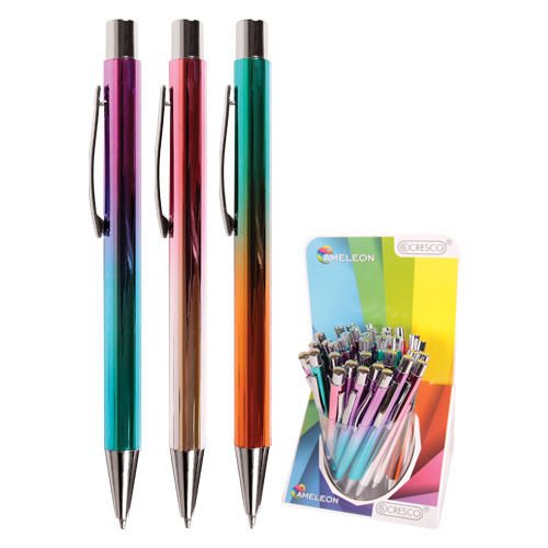Guľôčkové pero Cameleon v gradientných, lesklých farbách a chrómovanými doplnkami.