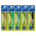 Guľôčkové pero Tornado Original s ergonomickým úchopom. Trojuholníkové držanie s masážnymi bodmi, ktoré pri písaní aktivujú tzv. prstové hmatové receptory a tým garantujú zdravé písanie bez únavy. Vhodné pre ľavákov, pravákov i dysgrafikov. Píše ľahko, bez tlačenia - doporučené pre prvé detské písanie - vhodná náhrada plniacich pier. Veľmi dlhá a tenká stopa písma, ktorá sa na kvalitnom papieri neprepíja ani nerozpíja. Zdravotne neškodný, rýchloschnúci, zmizíkovateľný, sýtomodrý atrament.