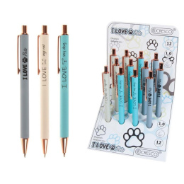 Guľôčkové pero s telom príjemného na dotyk v troch farbách tela.Lesklé chrómované doplnky vo farbe ružové zlato).