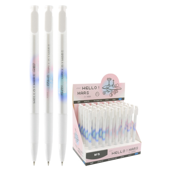 Guľôčkové pero s bielym telom a potlačou zo série Hello Mars.