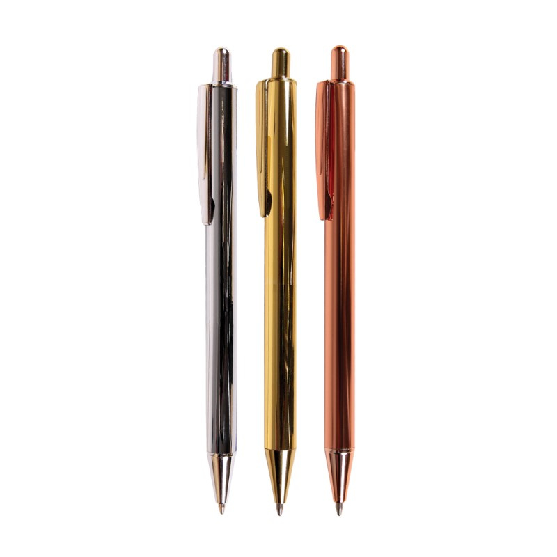 Guľôčkové pero s lesklým telom vo farbách drahých kovov pritiahne pozornosť na Vašom stole.