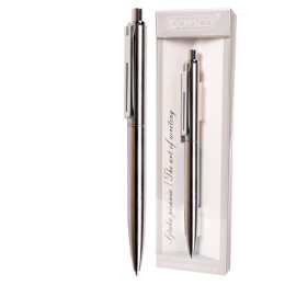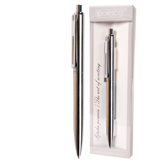 Elegantné guľôčkové pero s matným telom a lesklými doplnkami.