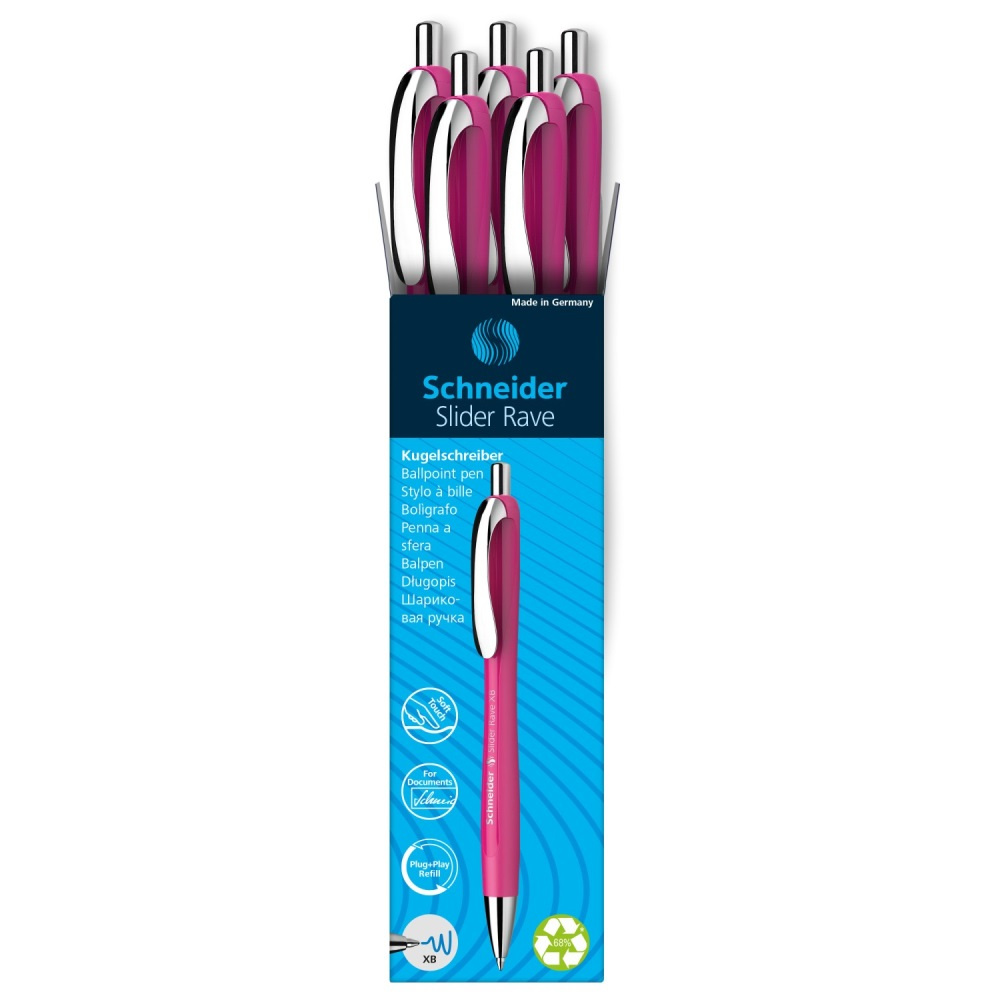 Guľôčkové pero Schneider Slider Rave s Viscoglide® technológiou pre hladké a kĺzavé písanie.