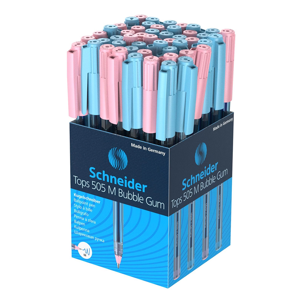 Jednoduché guľôčkové pero Schneider Tops 505 M jednorazové - limitovaná edícia Bubble Gum.