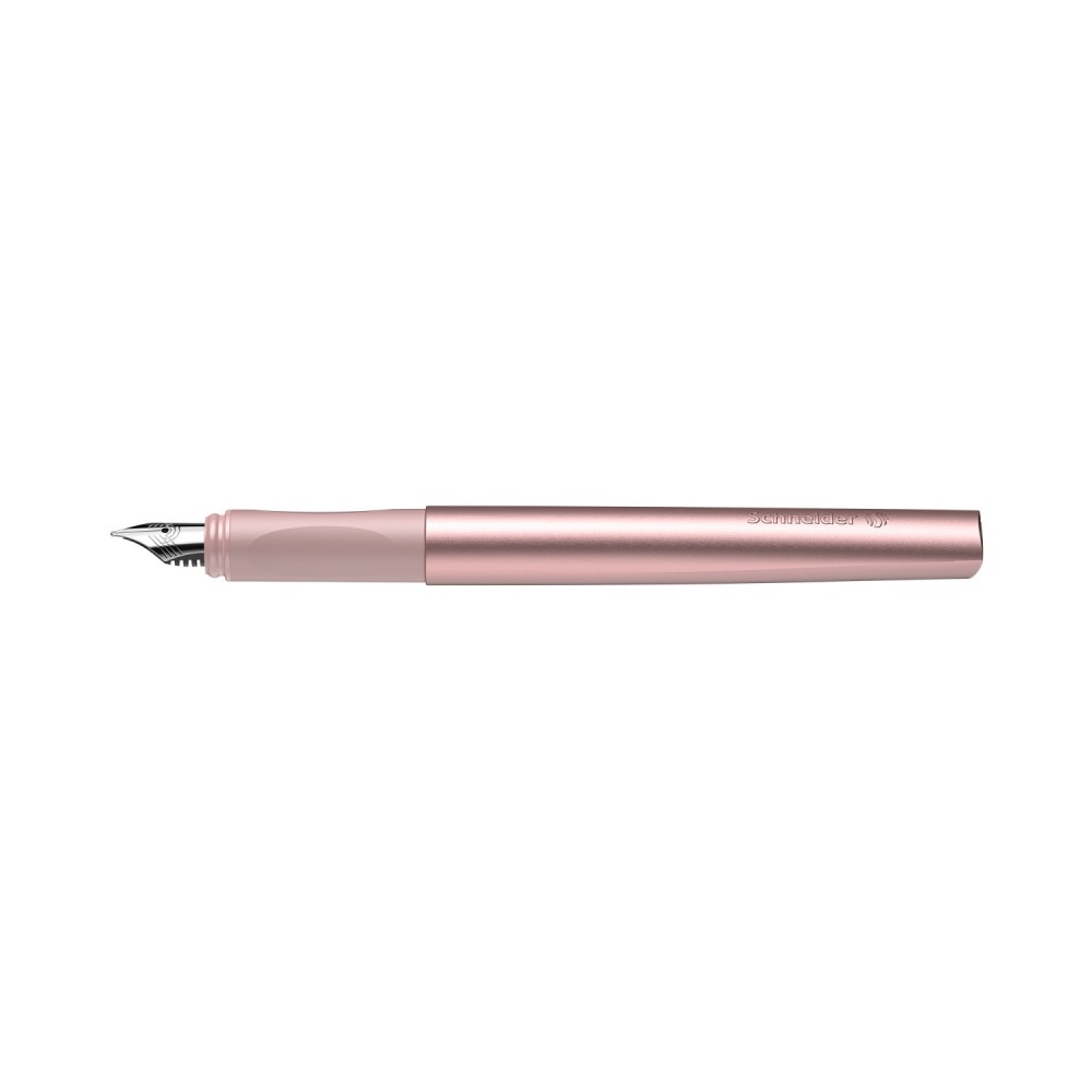 Plniace pero na bombičku s elegantným kovovým vzhľadom v ružovej farbe a výraznými krivkami.
