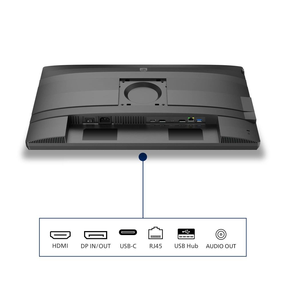Rozlíšenie:1920×1080 (Full HD); Výbava:Reproduktory, VESA, Pivot, Nastaviteľná výška, Výškově stavitelný, Redukce blikání (flicker-free), Redukce modrého světla; Formát obrazovky:16:9; Povrchová úprava displeja:Antireflexní; Energetická trieda:D; Rozhranie:USB 3.2 Gen 1, Jack 3,5 mm výstup, HDMI, LAN, DisplayPort, USB Type-C.