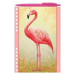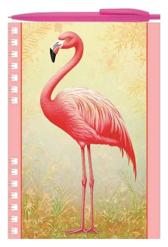 Popis Písacia sada: blok A5 s krúžkovou väzbou + guličkové pero - Plameniak