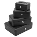 Uzamykateľná pokladňička vyrobená z kvalitnej ocele, s vyklápacím chrómovým madlom na ľahké prenášanie.