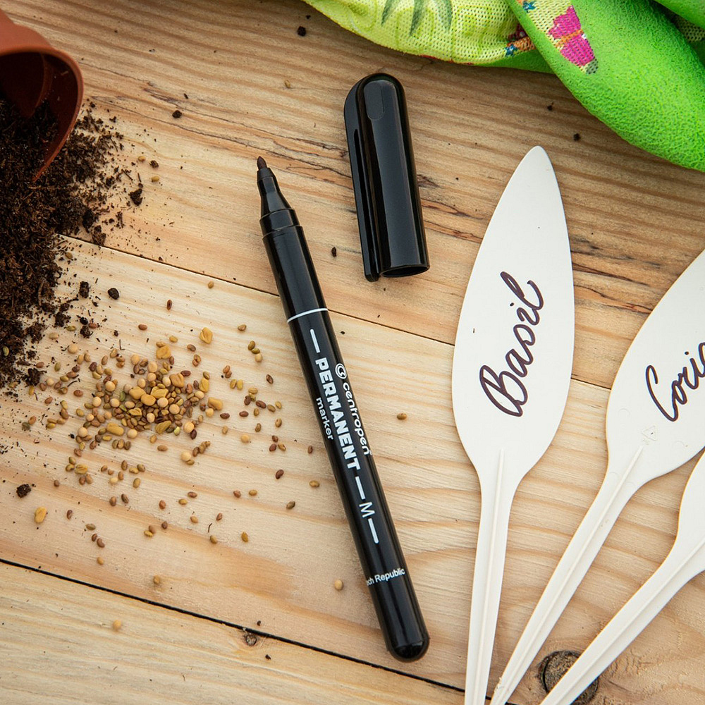 Permanentný popisovač na alkoholovej báze píše na väčšinu povrchov. Odolá vode, oteru, poveternostným vplyvom. Válcový hrot so šírkou stopy 1 mm. Vyrobené z 53 % recyklovaného materiálu.