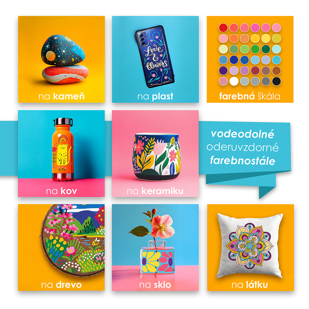 Akrylový popisovač dostupný v 36-tich farebných odtieňoch.