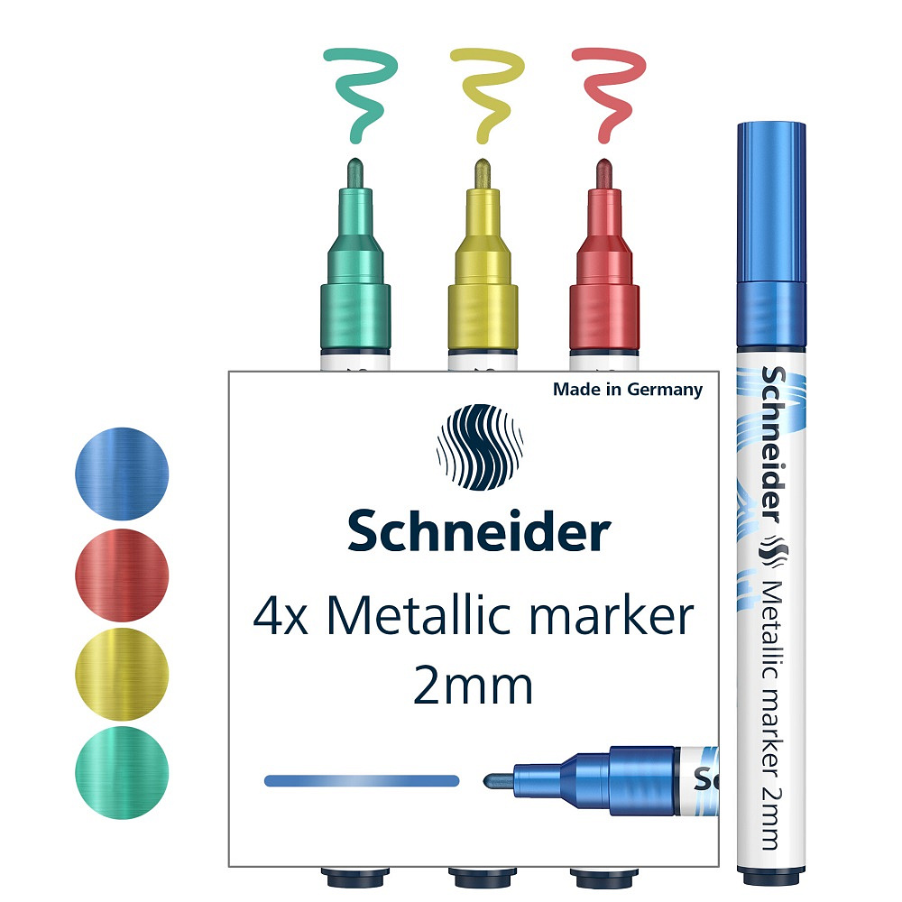 Schneider Paint-It 011 má atrament s metalickým efektom a vysokým leskom a to aj pri rôznych sveteľných podmienkach.
