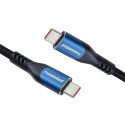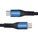 - Kábel je vybavený E-Mark čipom – riadiacou elektronikou, ktorá zabezpečuje komunikáciu pripojených zariadení. Umožňuje tak ľahšie dosiahnuť maximálnu možnú rýchlosť prenosu dát a nabíjania.