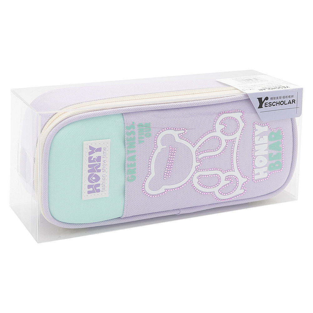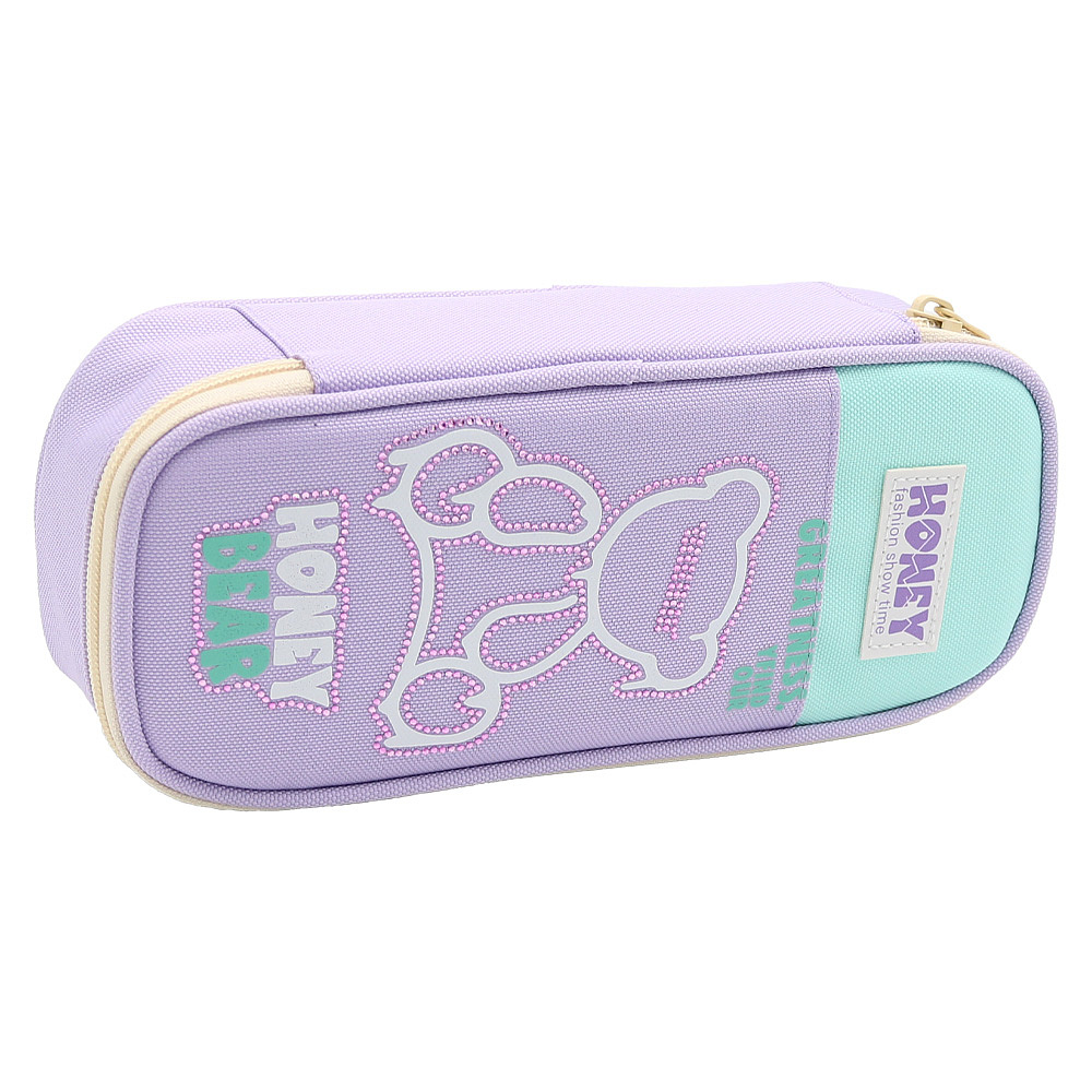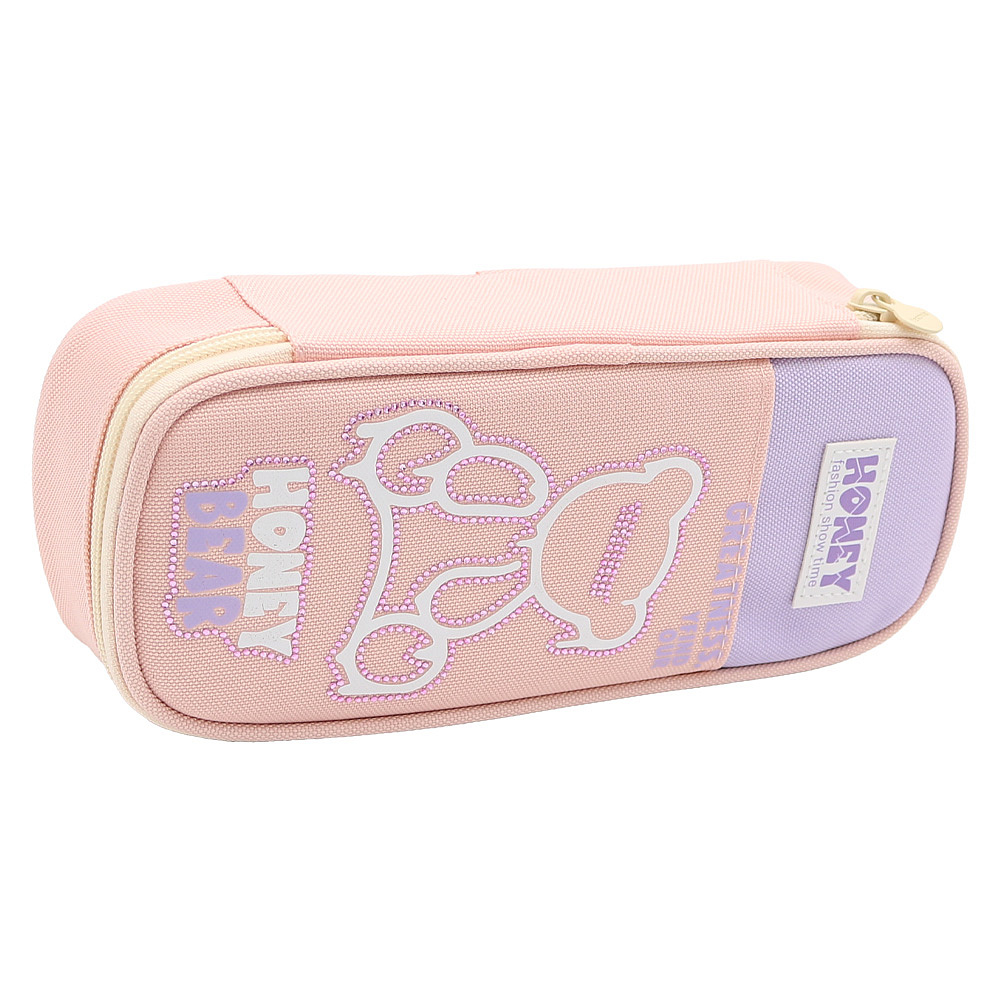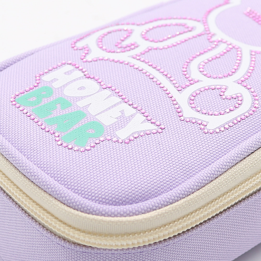 Ľahučké puzdro /peračník s trblietavým lemovaním medvedíka drobnými kamienkami (Fialové, Svetlo-ružové, Tmavo-ružové).