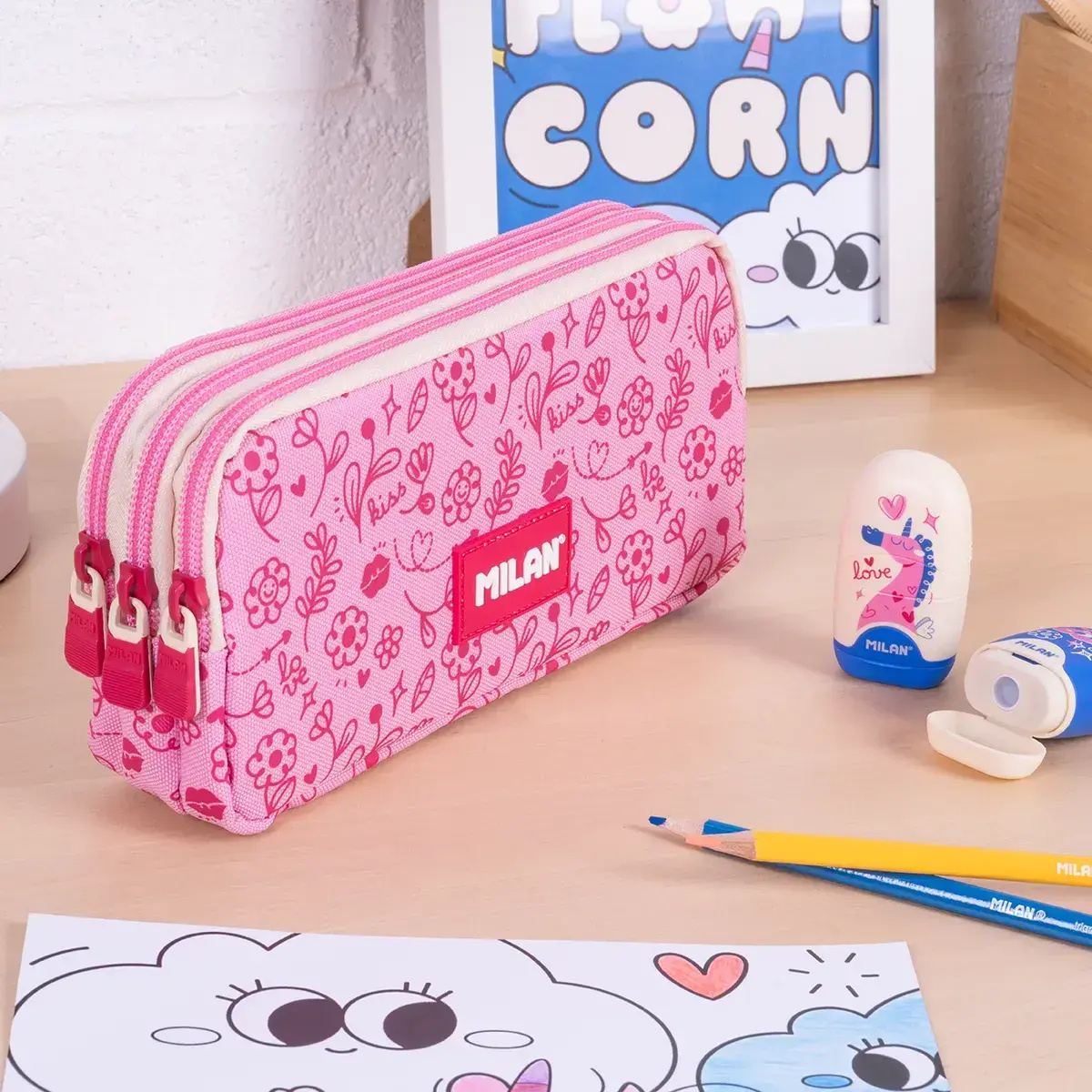 Puzdro na perá MILAN 3-zipsové - séria FlowiCorn