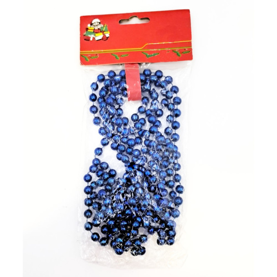 Dekorácia - reťaz na vianočný stromček, modré lesklé gulôčky o priemere 5 mm a celkovej dĺžke 2,6 m