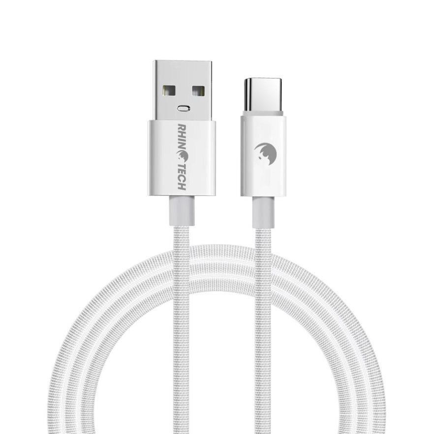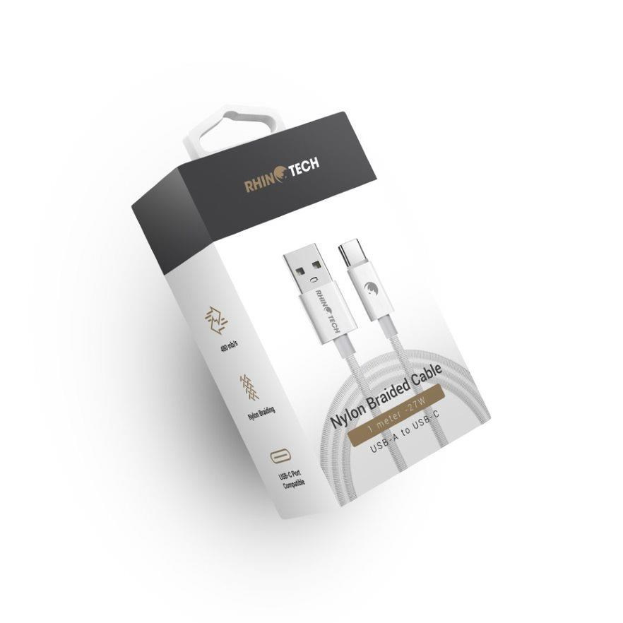 Kvalitní RhinoTech opletený datový a nabíjecí kabel s konektorem USB-A na USB-C o výkonu 27W.