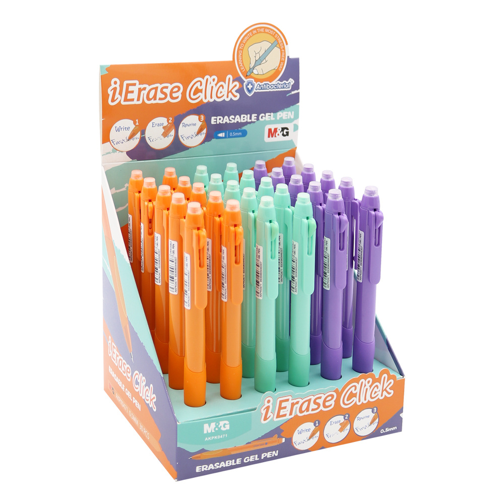 Gumovací roller od značky M&G. Predáva sa v troch farebných variantoch. Stopa hrotu je 0,5 mm. Farba atramentu je modrá. Guma je umiestnená na hornej časti tela. Klip slúži na vysunutie a zasunutie tuhy rollera. Nie je vhodné na oficiálne dokumenty.