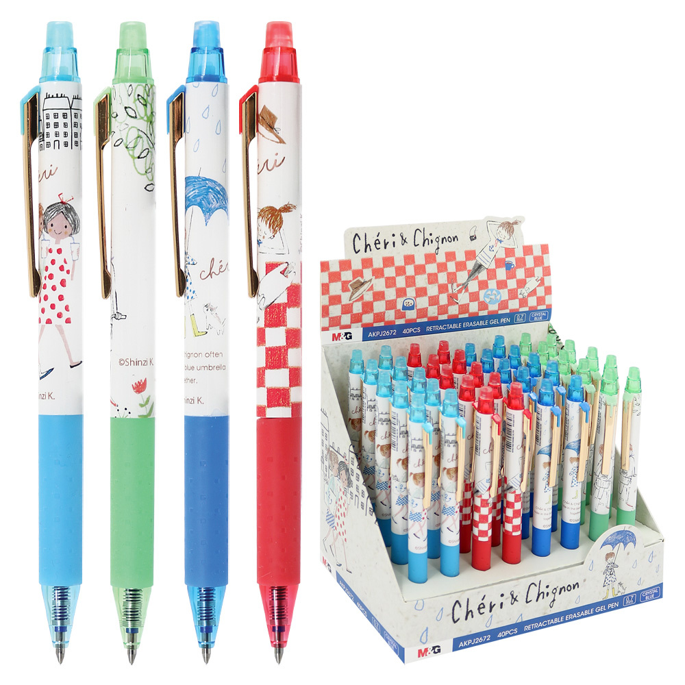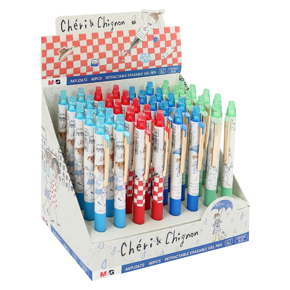 Efekt precízneho písma docielite vďaka tenkému 0,7 mm hrotu. Telo a viečko pera - farebný plast s efektným motívom Chéri & Chignon.