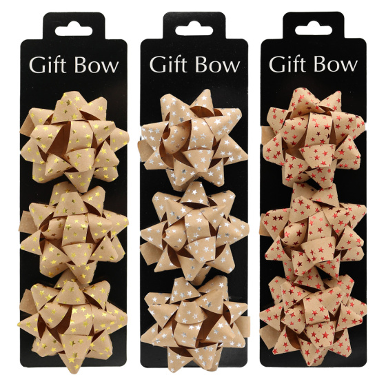 Veľká rozeta na ozdobenie darčekov - 3 kusy (3 farby s lesklými hviezdičkami).
